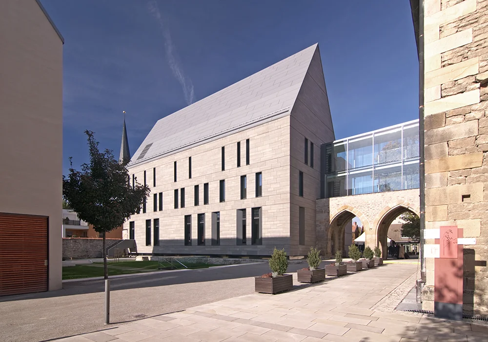 Inmitten der Erfurter Altstadt wurde mit dem Wiederaufbau der im Zweiten Weltkrieg zerstörten Klosterbereiche ein Stück Stadtraum zurückgewonnen. Junk & Reich ergänzten das denkmalgeschützte Ensemble des Augustinerklosters mit zwei Neubauten – der Bibliothek und einem Gästehaus – in präziser Auseinandersetzung mit Ort, Geschichte und Bestand.