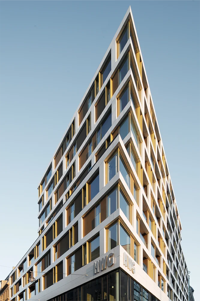 Direkt am Übergang von Halles Altstadt zur Stadtmoderne der 60er Jahre entstand ein Stadtbaustein mit starker städtebaulicher und sozialer Wirkung. Junk & Reich entwickelten ein Gebäude, das stadträumlich vermittelt, funktional überzeugt und architektonisch präzise gesetzt ist.